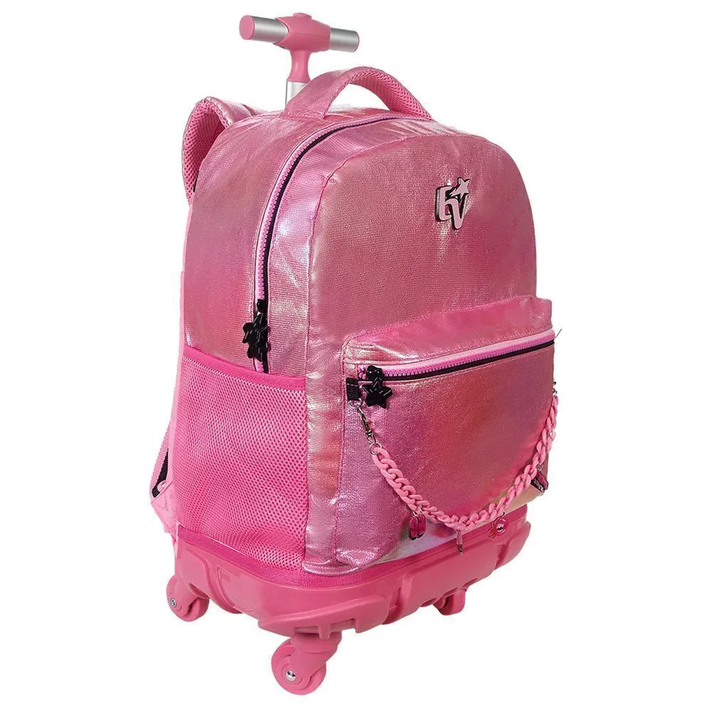 Produzida em nylon metalizado de alta qualidade, esta mochila se destaca pelo seu design moderno e cheio de personalidade. Com o logo em metal, uma corrente estilosa com charms e um chaveiro personalizado, cada detalhe foi pensado para refletir a atitude da Emilly Vick. O zíper tratorado colorido e os puxadores em metal complementam o visual com um toque extra de originalidade. Além do estilo, a Mochila Emilly Vick oferece máxima mobilidade e conforto, equipada com um trolley de base reforçada e 4 rodas 360º em gel, que garantem um deslocamento suave e sem esforço em qualquer direção. Ideal para a escola, viagens ou qualquer aventura, é feita para quem quer brilhar com autenticidade.