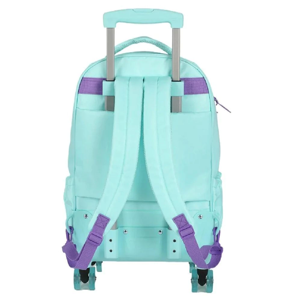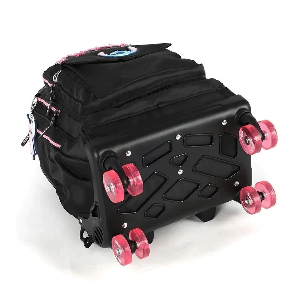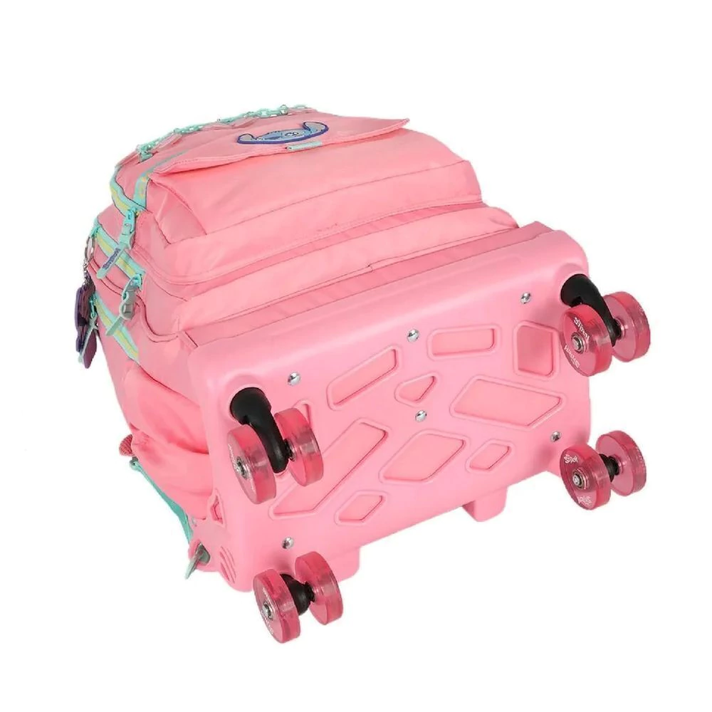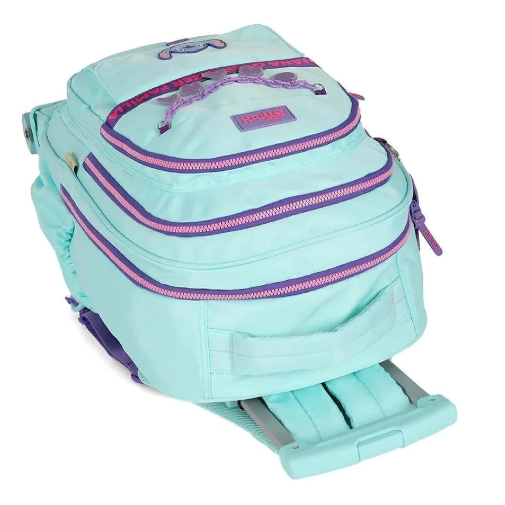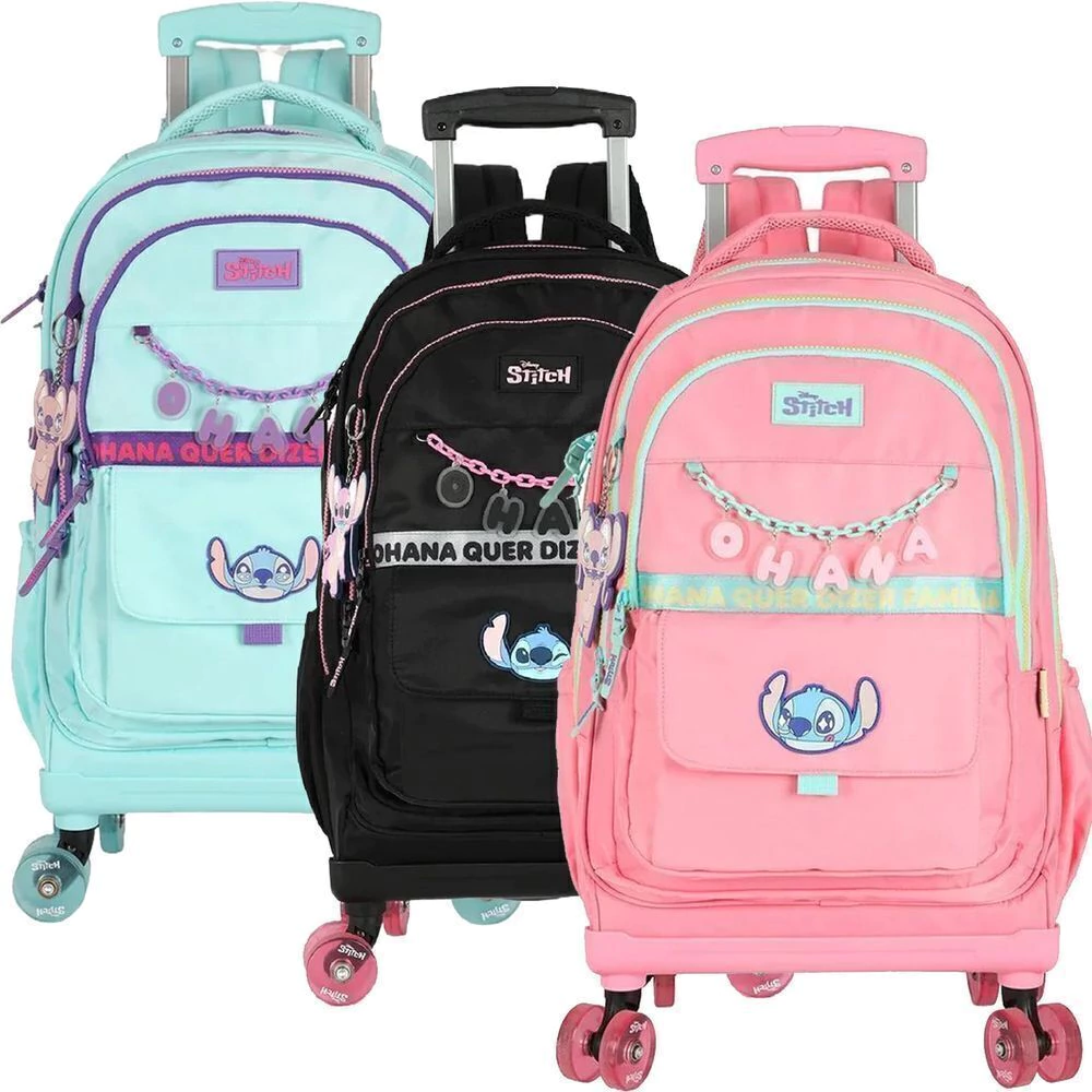 A Mochila com Rodinhas e Alça do Stitch e Angel Ohana da Disney Luxcel combina diversão e funcionalidade, ideal para a volta às aulas ou o dia a dia, oferecendo praticidade com seu sistema de rodinhas 360°. Disponível em 3 cores vibrantes: preto, salmão e turquesa.