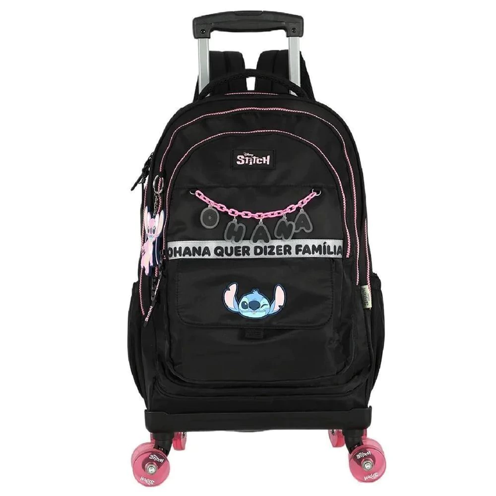 Produto: Mochila com Rodinhas e Alça do Stitch e Alngel Ohana da Disney