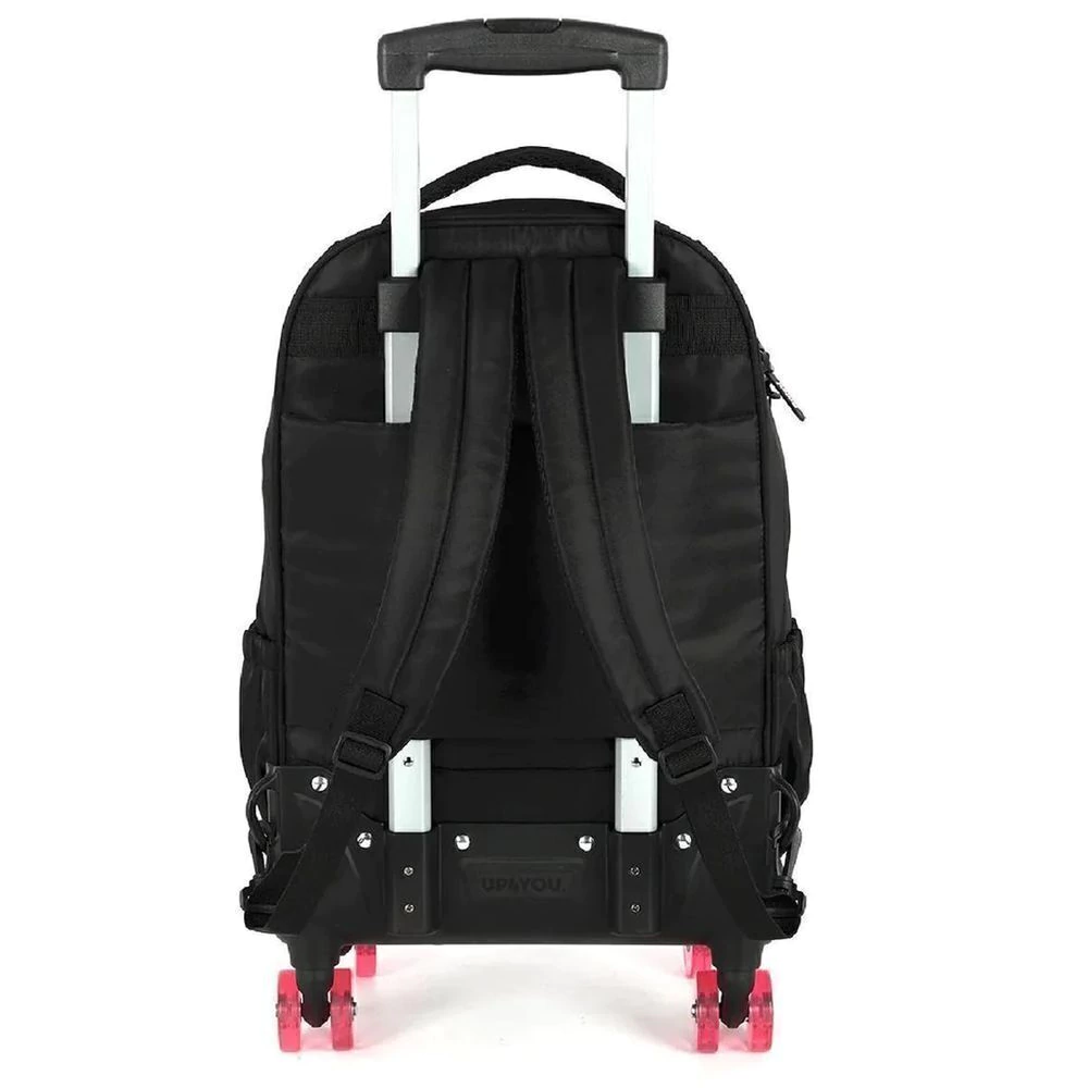 Prepare-se para encantar com a Mochila de Rodinhas Luxcel do Stitch e Angel Ohana da Disney, modelo mc50082sc. Confeccionada em náilon resistente, esta mochila escolar ou para o dia a dia apresenta um design vibrante com os adoráveis personagens Stitch e Angel Ohana, realçado por um exclusivo chaveiro personalizado da marca. Pensada para a praticidade e conforto, conta com uma base emborrachada e quatro rodinhas duplas de skate com giro 360°, garantindo um transporte suave e fácil em qualquer superfície. O interior espaçoso inclui um compartimento amplo com espaço dedicado para notebook e bolsos frontais para manter seus itens essenciais sempre organizados. Com 28 litros de capacidade e dimensões de 48 x 34 x 22 cm, é uma mochila média perfeita para estudantes e profissionais que buscam estilo, durabilidade e a magia da Disney em um só produto.